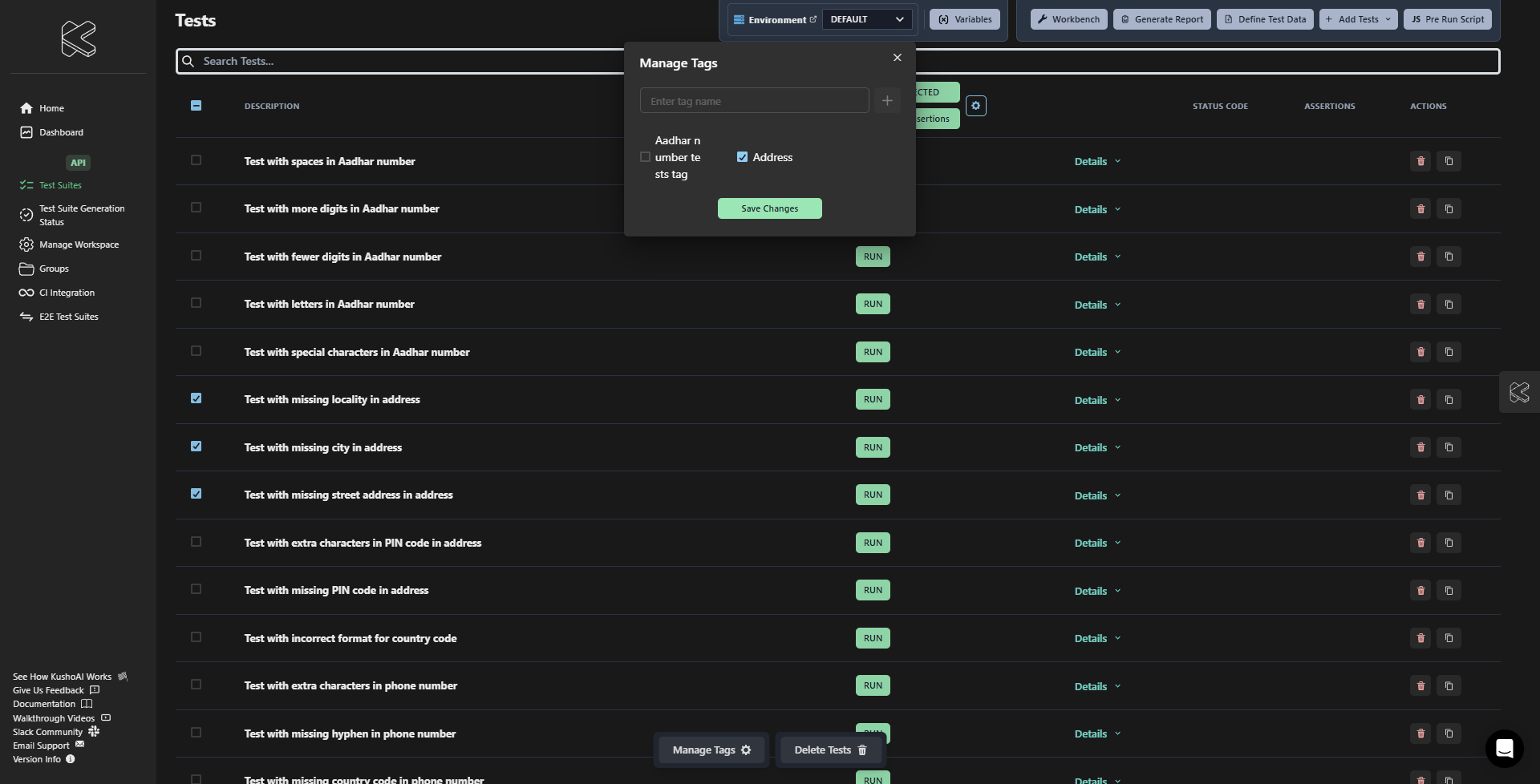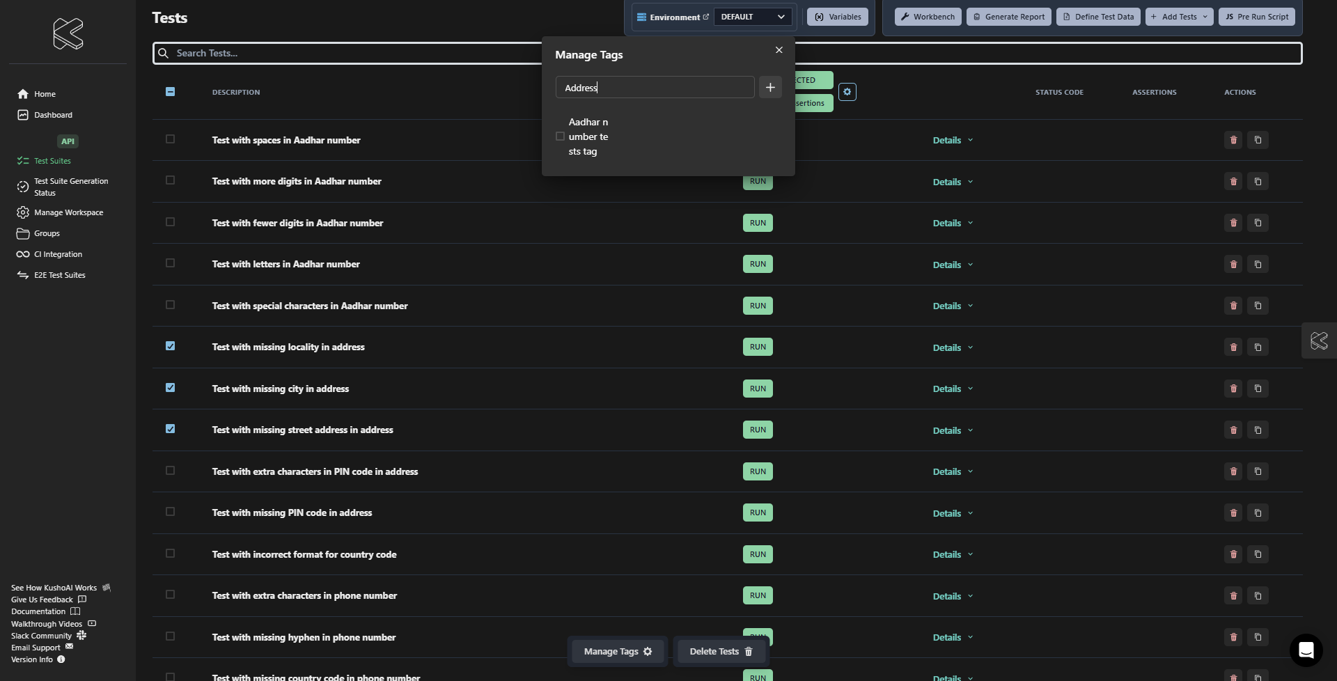 - Click on the "Manage Tags" button located at the bottom of the test case list.